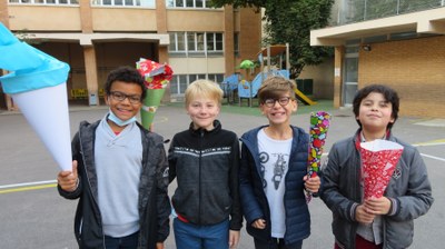 Quand ils rentrent à l'école primaire, les petits Allemands reçoivent de leurs parents une "Schultüte", un cornet d'école contenant du matériel scolaire, des bonbons, du chocolat... plein de belles et bonnes choses pour commencer l'année !